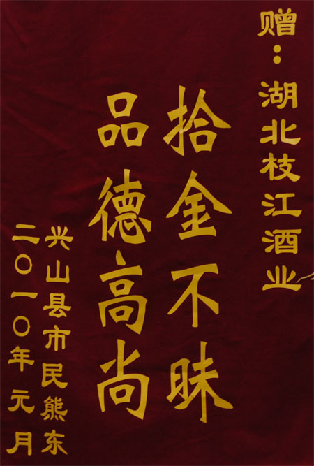 2月2日,來自興山的一個(gè)青年男子將印有“拾金不昧,品德高尚”字樣的錦旗,送到枝江酒業(yè)工會(huì)辦公室,以表達(dá)對拾金不昧的枝江酒業(yè)員工夏險(xiǎn)峰的…
