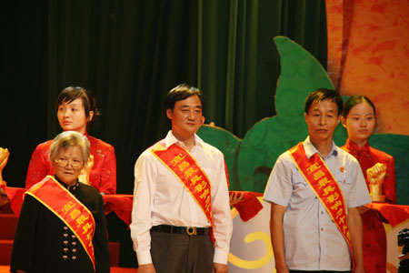 9月15日晚,在宜昌劇院舉行的市總工會慶祝新中國成立60周年文藝晚會上,被評選為新中國成立以來宜昌最具影響力十大勞模的蔣紅星、俞學(xué)鋒、王…