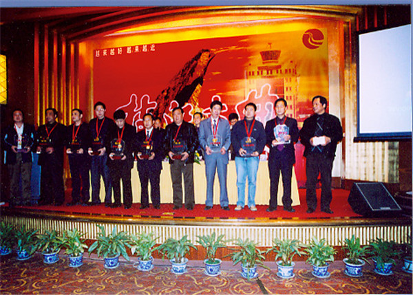 3月21日在成都春季糖酒會(huì)上,枝江酒業(yè)公司對(duì)2004年枝江大曲全國(guó)十佳經(jīng)銷商進(jìn)行表彰,并重獎(jiǎng)銷售狀元,圖為十佳經(jīng)銷商在頒獎(jiǎng)大會(huì)上。