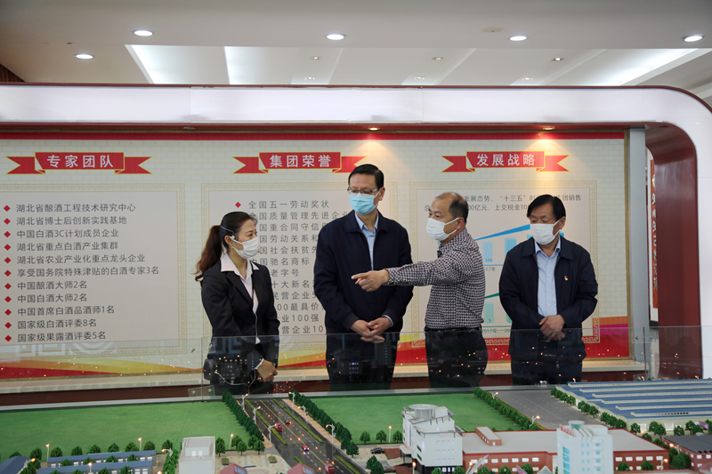 4月14日,宜昌市政協(xié)副主席王仁俊在枝江市政協(xié)主席方明柱、副主席董廣平和枝江酒業(yè)董事長張春雷、第一書記張華、財務總監(jiān)亓新明的陪同下,參觀…