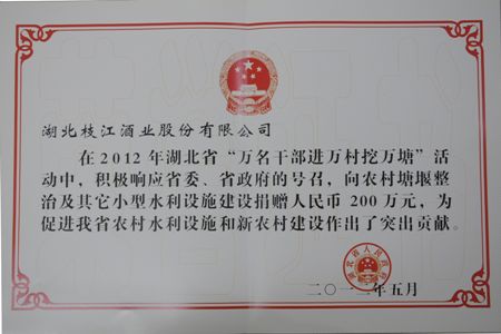5月22日,黨委書記張華代表枝江酒業(yè)出席了在武漢召開的全省萬(wàn)名干部進(jìn)萬(wàn)村挖萬(wàn)塘總結(jié)表彰會(huì)。省委書記李鴻忠出席會(huì)議并講話,省委副書記、省…