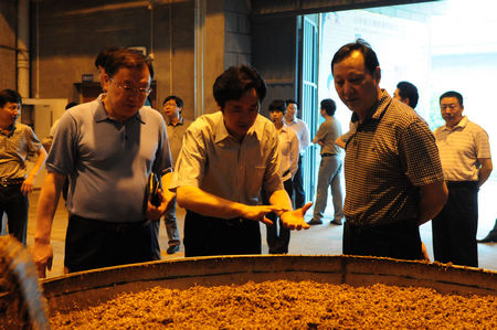 6月15日,黑龍江省政府研究室副主任董偉俊、黑龍江省食品協(xié)會(huì)秘書(shū)長(zhǎng)車(chē)有春一行在湖北省政府研究室產(chǎn)業(yè)處處長(zhǎng)韓明山、宜昌市政府研究室副主任覃世斌等的陪同下,到枝江酒業(yè)參觀(guān)考察。枝江酒業(yè)董事長(zhǎng)蔣紅星、常務(wù)副總經(jīng)理譚崇堯、副總經(jīng)理亓新明對(duì)來(lái)訪(fǎng)客人給予了熱情接待。