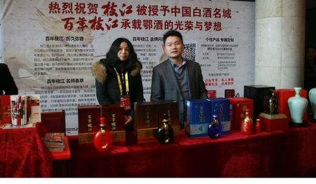 年會(huì)會(huì)場(chǎng)的通道上,枝江產(chǎn)品布展