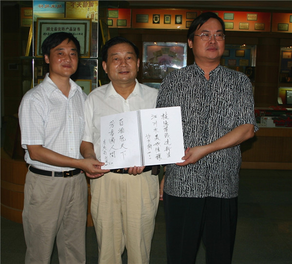 8月9日,宜昌市政協(xié)副主席景學(xué)鎮(zhèn)(中)一行在枝江市委副書記陳敏仁(右)、枝江酒業(yè)公司董事長兼總經(jīng)理蔣紅星陪同下,到枝江酒業(yè)考察調(diào)研。(…