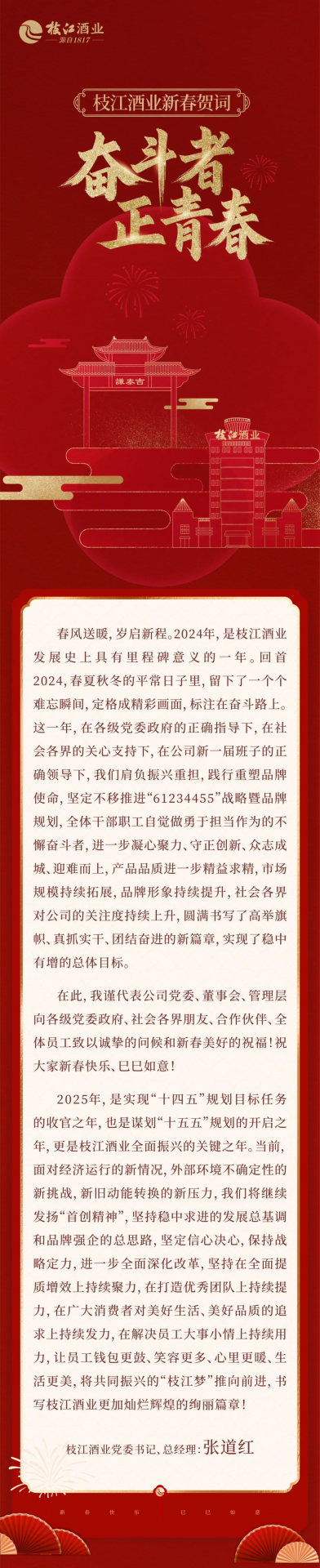 1月22日上午,集團董事長昝圣達聽取了張道紅總經理代表枝江酒業(yè)管理層所作的2024年工作匯報和2025年工作安排。枝江酒業(yè)管理層的其他負責人也…