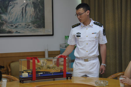 在隨后舉行的座談會上,任洪亮代表中國海軍“宜昌艦”全體官兵向枝江酒業(yè)贈送了最新的564“宜昌號”導(dǎo)彈護(hù)衛(wèi)艦?zāi)P?。他感謝枝江酒業(yè)對“宜昌艦”多年以來的關(guān)心和支持,希望雙方進(jìn)一步加深友誼,促進(jìn)軍企共建發(fā)展。蔣紅星說,作為宜昌市愛國擁軍的模范企業(yè),早在2001年,枝江酒業(yè)就與海軍“宜昌艦”簽訂了軍民共建協(xié)議,在共建活動中,也曾親臨“宜昌艦”,體驗了官兵生活。對海軍官兵長年堅守崗位、護(hù)國衛(wèi)家,為人民安居樂業(yè)、企業(yè)安定發(fā)展保駕護(hù)航表示由衷的感謝和崇高的敬意。同時,他表示,枝江酒業(yè)也將繼續(xù)做好對中國海軍“宜昌艦”的服務(wù)工作,建立和諧的軍企軍民關(guān)系。