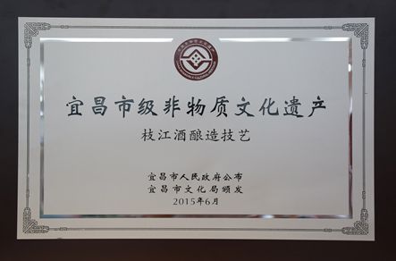 6月29日,枝江市文化體育旅游局局長李建庭一行為枝江酒業(yè)送來了宜昌市人民政府、宜昌市文化局頒發(fā)的“宜昌市級非物質(zhì)文化遺產(chǎn)”牌匾,枝江酒釀造技藝成為宜昌市級非物質(zhì)文化遺產(chǎn)。非物質(zhì)文化遺產(chǎn)是世代相承,與群眾生活密切相關的文化表現(xiàn)形式,既是歷史發(fā)展的見證,又是珍貴的、具有重要價值的文化資源。枝江酒的釀造技藝從晚清時期的謙泰吉槽坊開始,已歷經(jīng)六代傳人。保護和利用好這筆非物質(zhì)文化遺產(chǎn),對于踐行科學發(fā)展觀,傳承優(yōu)秀民族文化遺產(chǎn)具有重要意義。“枝江酒”2006年獲得中國地理標志產(chǎn)品,2011年“枝江”注冊商標被商務部認定為“中華老字號”,對釀造技藝的傳承與保護一直是枝江酒業(yè)在踐行的發(fā)展觀。枝江酒業(yè)本著“保護為主、搶救第一、合理利用、傳承發(fā)展”的工作方針,將原始的釀造工具較完整地保留下來,成為見證釀造歷史的實物。