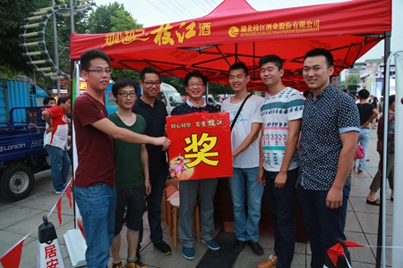 8月12日,美麗的枝江五柳樹公園廣場,枝江酒業(yè)傾情回饋市民、微信掃碼贈酒體驗活動仍在繼續(xù)。經(jīng)過兩天的實惠體驗,市民的參與熱情急劇升溫,下午5點,距離活動開始還差一個半小時,活動展臺前就排起了長隊。為增加活動的趣味性、多樣性,活動現(xiàn)場新增了拼手氣環(huán)節(jié),活動獎品也更加豐富,參加活動的市民憑手氣在情義結(jié)、小金版、小苦蕎三款產(chǎn)品中任意抽取獎品。新增的環(huán)節(jié)讓市民興趣更高,抽獎臺前一度出現(xiàn)秩序混亂。熱鬧的現(xiàn)場,前來購買枝江酒的消費者十分踴躍,在近幾天的活動中,展位上分別售出了謙泰吉、百年枝江楚之韻感恩版、小方瓶等產(chǎn)品。在活動現(xiàn)場,播放的枝江酒業(yè)新出品的歌曲——《酒城之戀》吸引了不少廣場舞愛好者和交誼舞愛好者,紛紛前來拷貝歌曲文件,他們表示,要將《酒城之戀》跳成枝江市的樣板廣場舞。