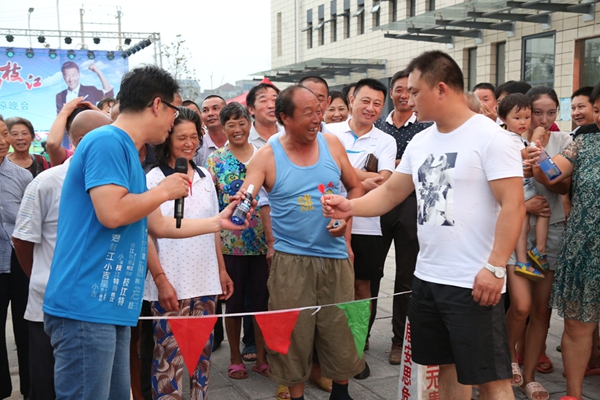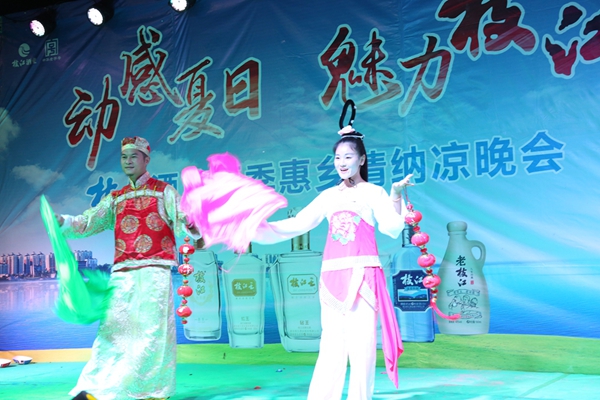當(dāng)?shù)乩习傩照f,便民服務(wù)中心廣場建好后,來這里進(jìn)行商業(yè)演出的隊(duì)伍一波接一波,大多是一個(gè)演出車,三五個(gè)人唱戲,像枝江酒業(yè)這樣搭建大舞臺,弘揚(yáng)正能量,注重群眾參與性,宣傳枝江大品牌的演出還是頭一次。