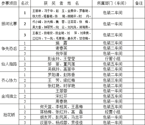 枝江酒業(yè)慶“三?八”女職工趣味運動會獲獎情況